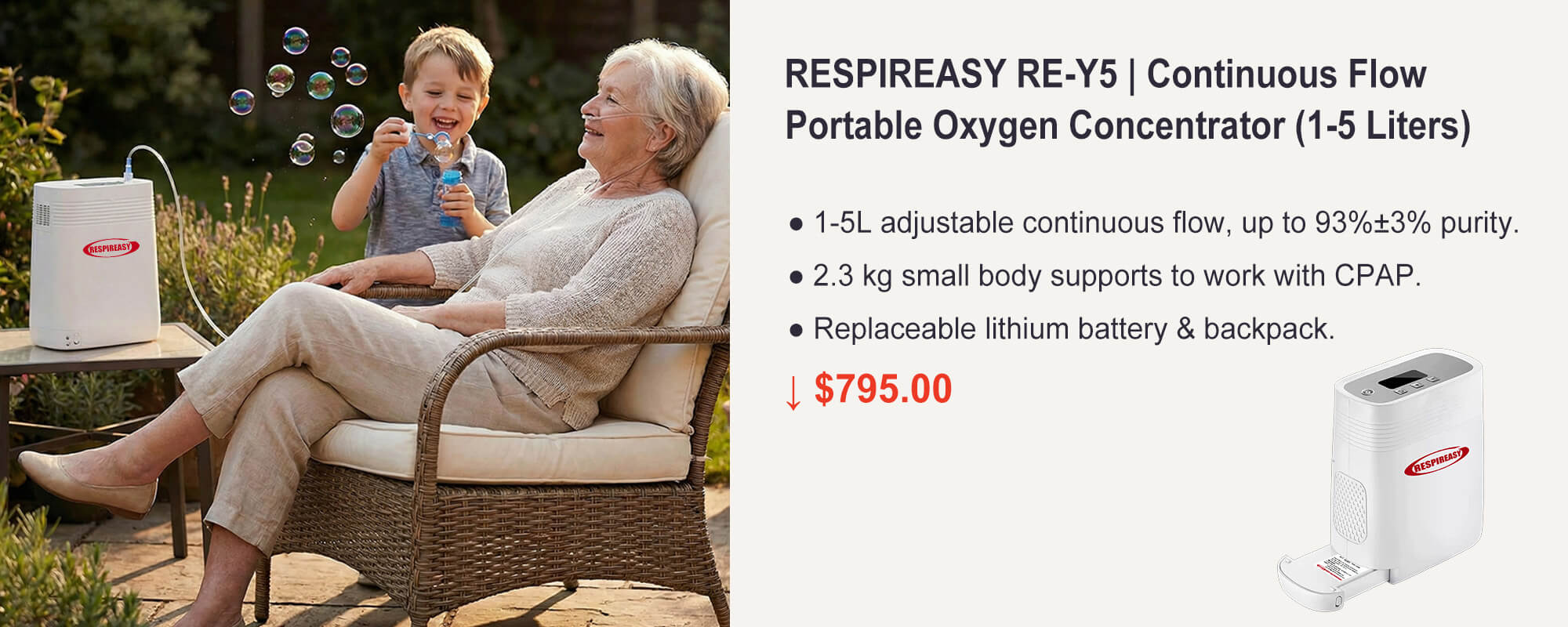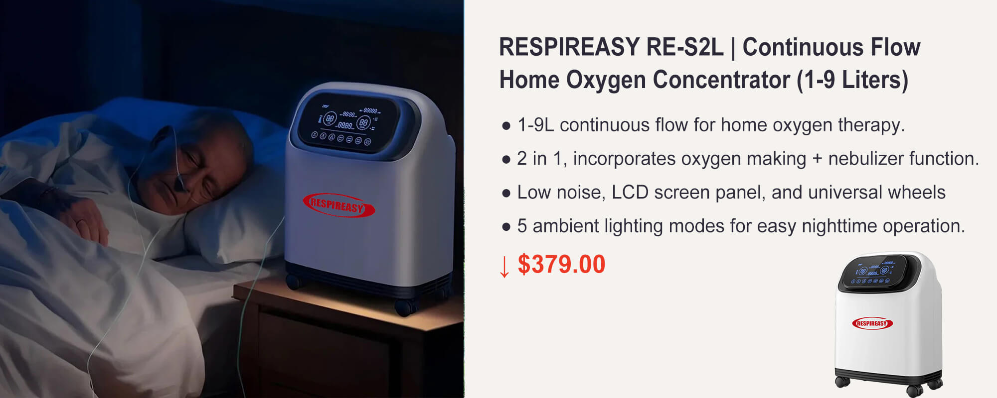 RESPIREASY 9 Liters Output Continuous Flow Oxygen Concentrator for Home O2 Oxygen Therapy & Personal Respiratory Care 1-year Warranty